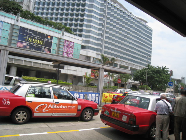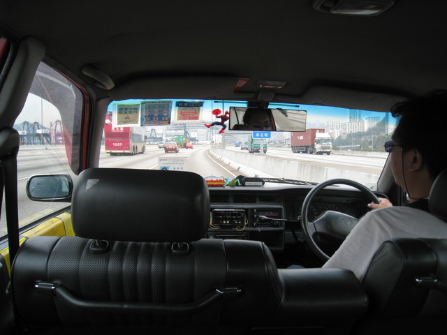 香港的計程車為較統一的紅白配色!不像大陸的車色這麼的花俏 香港的治安可能比較好!乘客和司機間沒有鐵架隔著哩