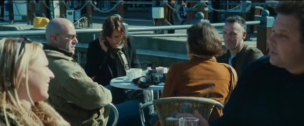Jennifer正在跟朋友享用茶點的這一幕就是在維多利亞港的碼頭邊拍的