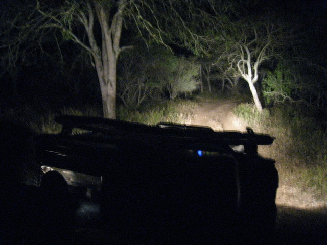 只能靠著車頭燈與導遊帶的手提遠燈來找動物